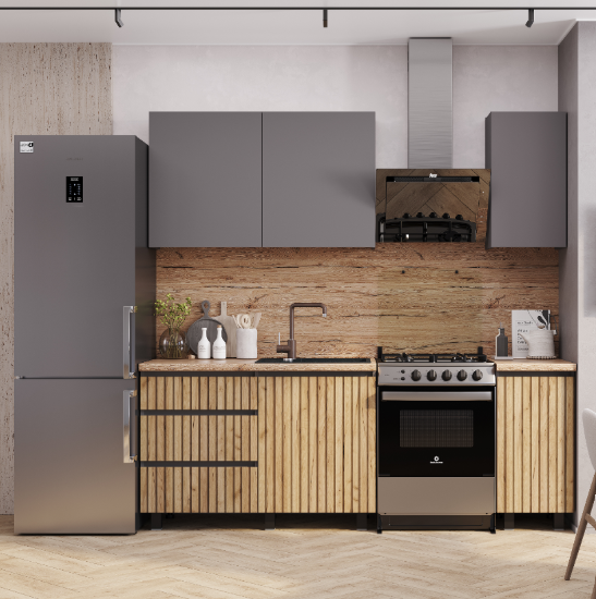 Фасад ЛДСП Графит/Дуб крафт с фотопечатью "рейки"
