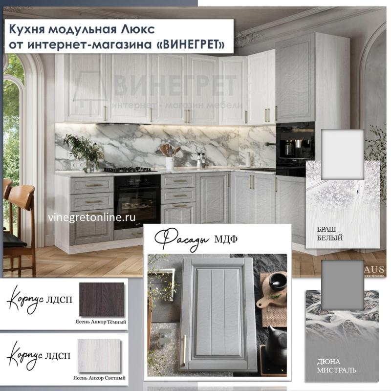 Модульная кухня Люкс Браш белый 3,0 метра (Раус)
