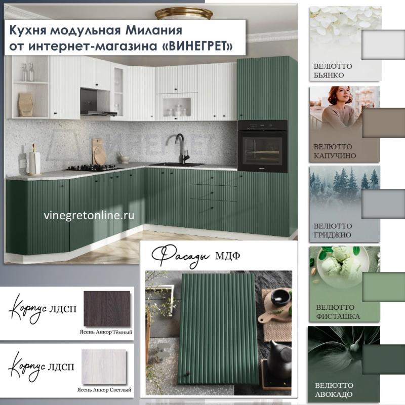 модульная кухня милания/орион велютто авокадо 4,2х3,0 метра (раус)
