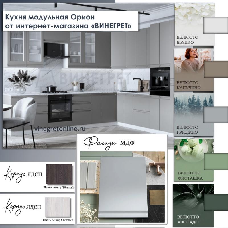 Модульная кухня Орион Велютто гриджио 1,4х1,6 метра (Раус)